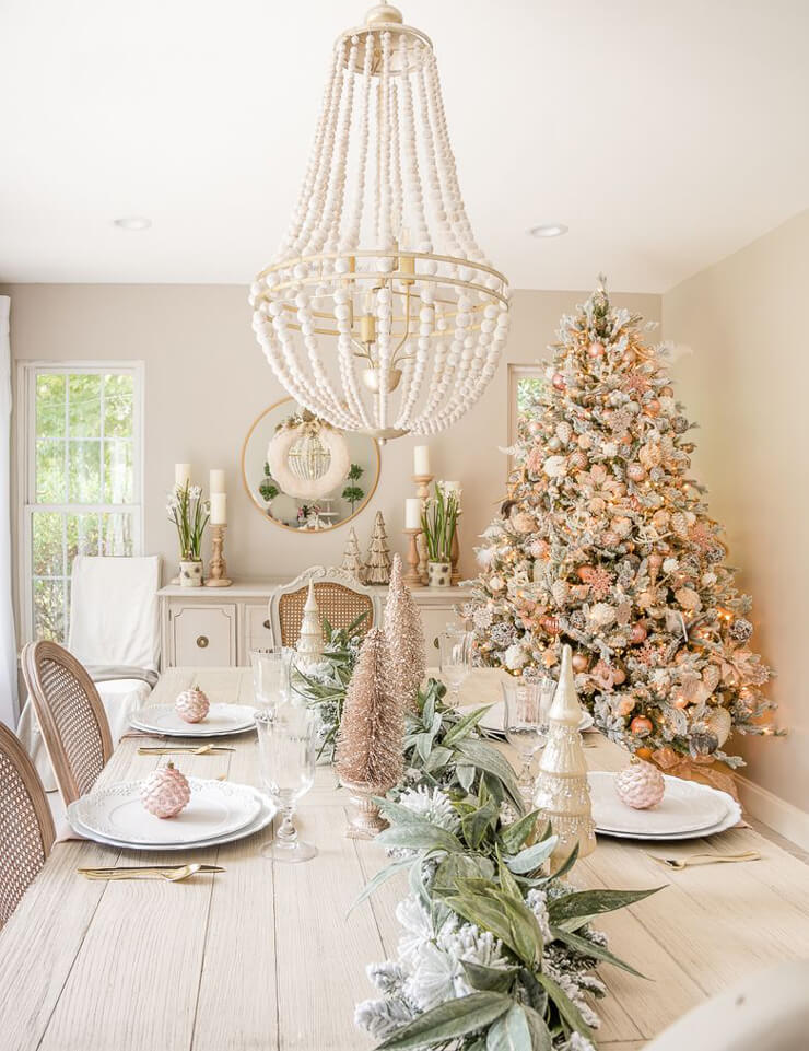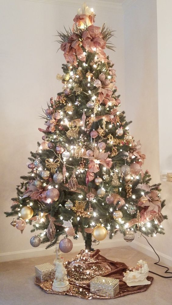 Por último tenemos lo que consideramos la joya de la decoración navideña, la navidad en oro rosa. Sobria, elegante, sofisticada con la calidez del oro y ese rosa tenue evocando las arenas del desierto, las paredes de esas edificaciones de medio oriente con la fluidez del brillo dorado de la estrella de navidad, la navidad en oro y oro rosa nos acerca más a la época bíblica que evocamos en estas fechas.